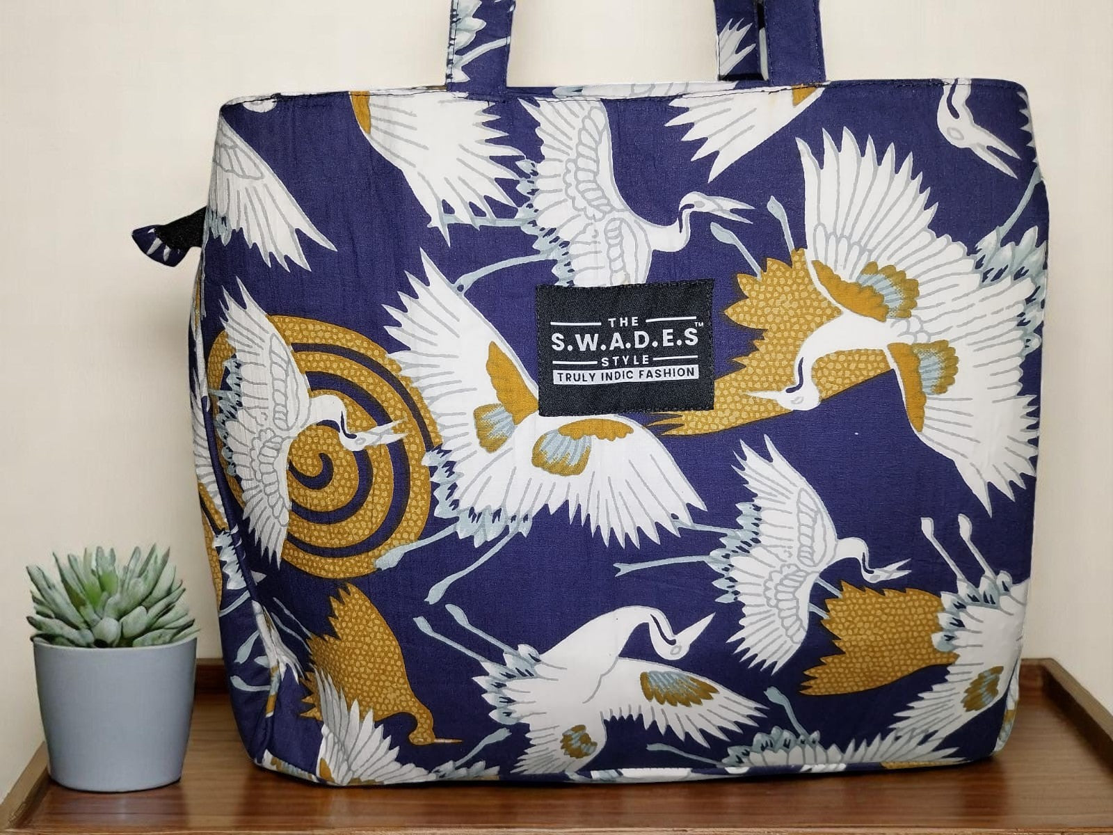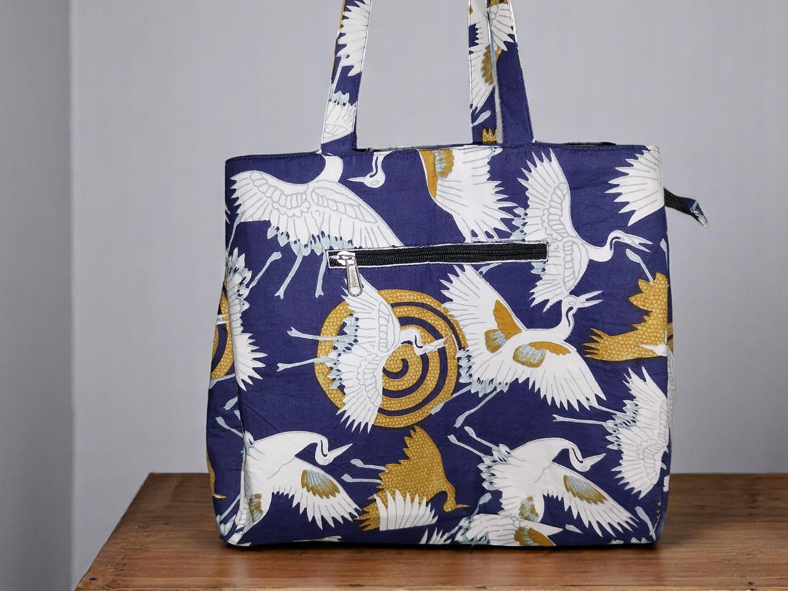 Indigo Crane Print 3-Compartment Cabas