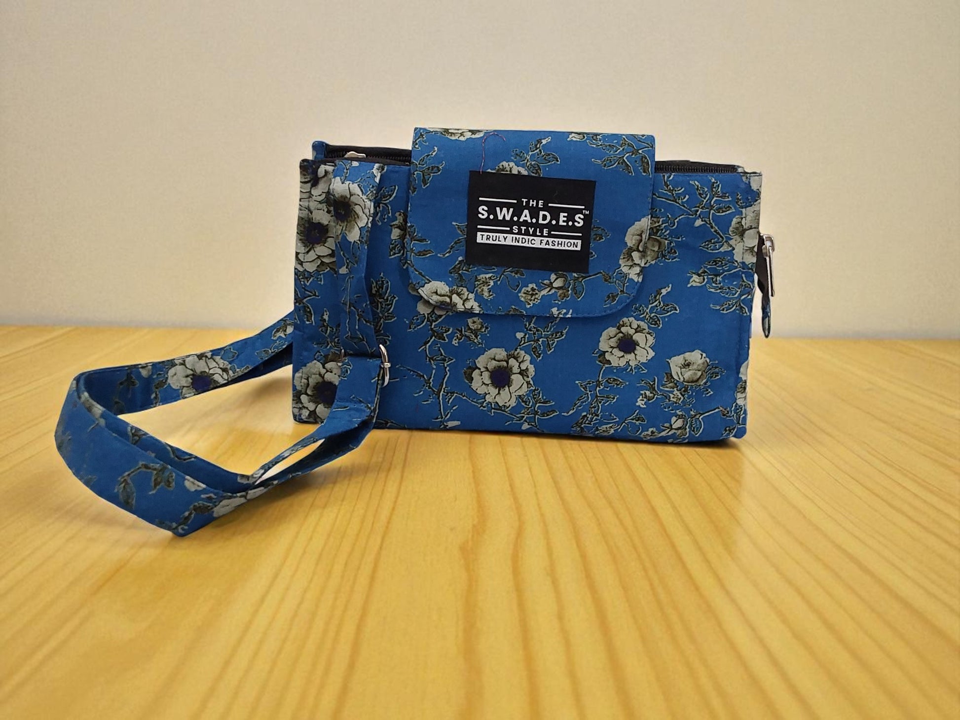 This sling bag embodies both enduring style and versatile functionality. Crafted for the modern individual, the Chahar Fasil Sling features a captivating blue floral design that effortlessly transitions from spring freshness to winter elegance.